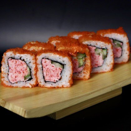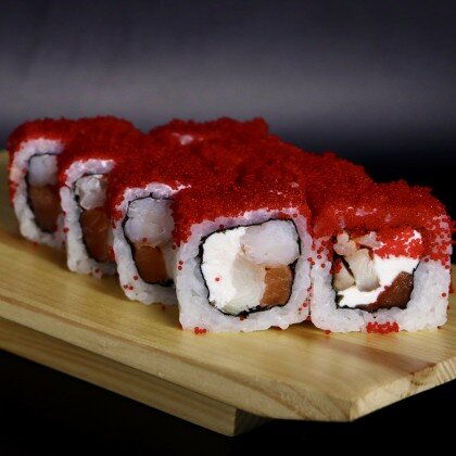Икра тобико, курица, лосось в темпуре, сливочный сыр