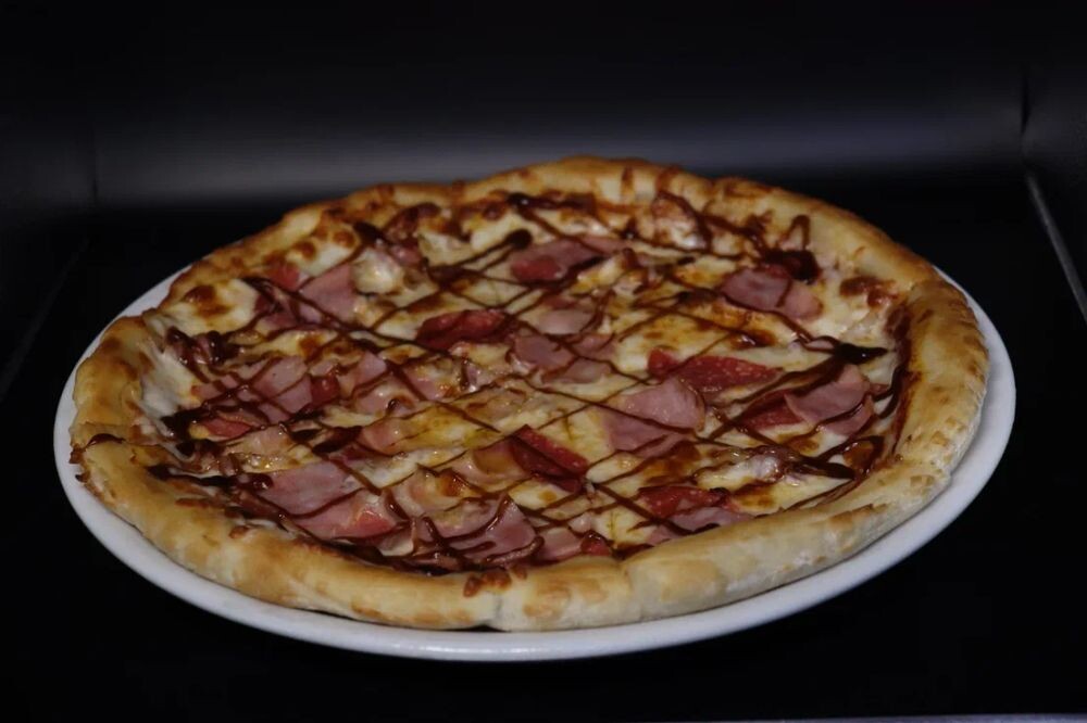 Сыр моцарелла, бекон, салями, ветчина, соус барбекю