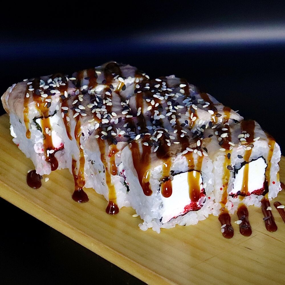 Сливочный сыр, тобико, угорь, кунжут, соус унаги