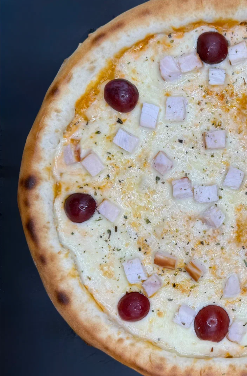 Курица х/к, орегано, сыр моцарелла, соус, виноград
