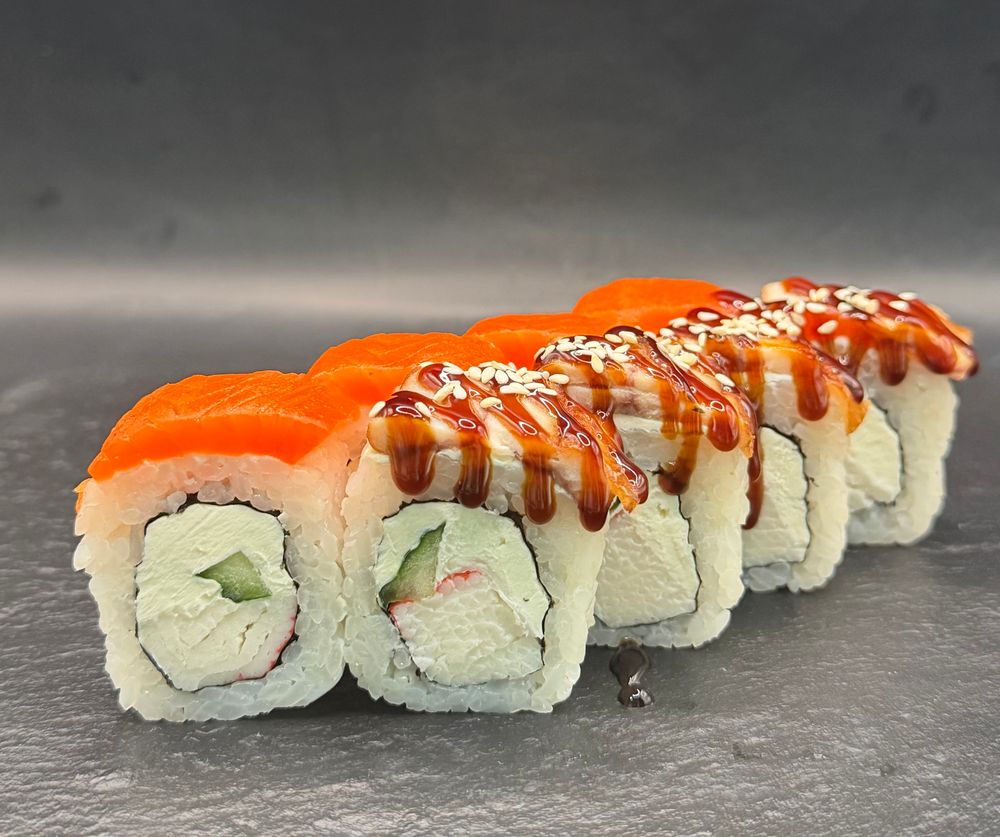 Сливочный сыр, имитация краба, лосось, угорь, унаги, кунжут